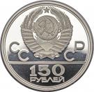 The two-headed eagle (designed by I.Bilibin), the letters under it indicate the metal sign, the fineness, the mint trademark and the fine metal content. The inscriptions along the rim: at the top — «100 РУБЛЕЙ 1994 г.» (100 RUBLES 1994), at the bottom — «БАНК РОССИИ» (BANK OF RUSSIA).